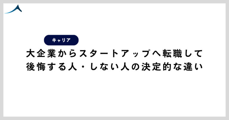 「こんなはずじゃなかった」──大企業からスタートアップへ転職した人が、1年以内に後悔するケースは決して少なくない。一方で同じスタートアップに転じた人の中には「こ...